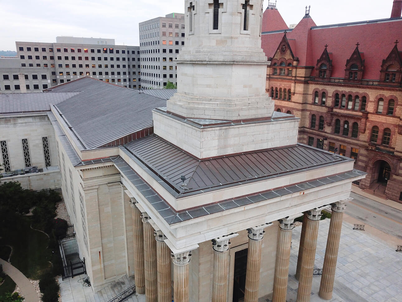 Some of the projects Imbus has performed include, Proctor & Gamble Twin Towers in Cincinnati , Ohio , which utilize a batten seam terne-coated stainless steel roof panel. Christ Church Cathedral in Lexington , Kentucky , has a standing seam copper roof system. Fidelity Investments in Covington , Kentucky has a custom designed 20 oz. lead-coated copper batten seam roof system. This project utilizes a 30” pan width which had to be U.L. tested specifically for this project.